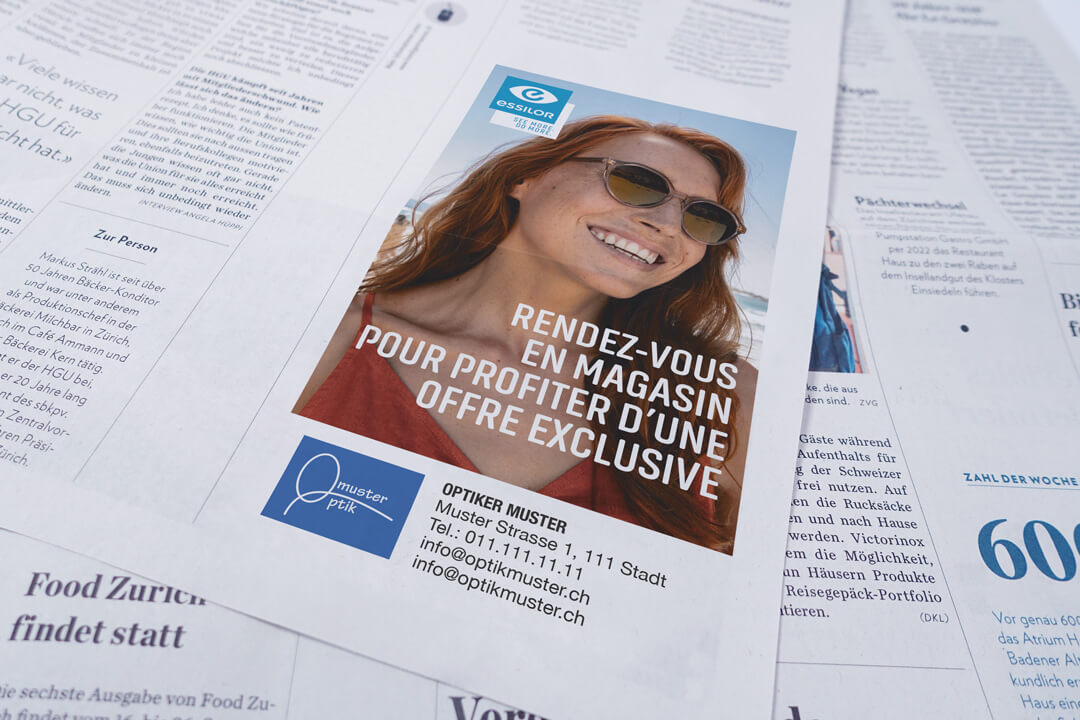 Essilor approvisionne de nombreux opticiens en Suisse. Elle les soutient également avec un ensemble complet de services de communication. L’offre estivale des opticiens devait être stimulée par une action fraîche pour les articles restants après le confinement covid. Une campagne estivale devait préparer les clients aux mois plus chauds et leur redonner envie de se rendre dans les magasins...
