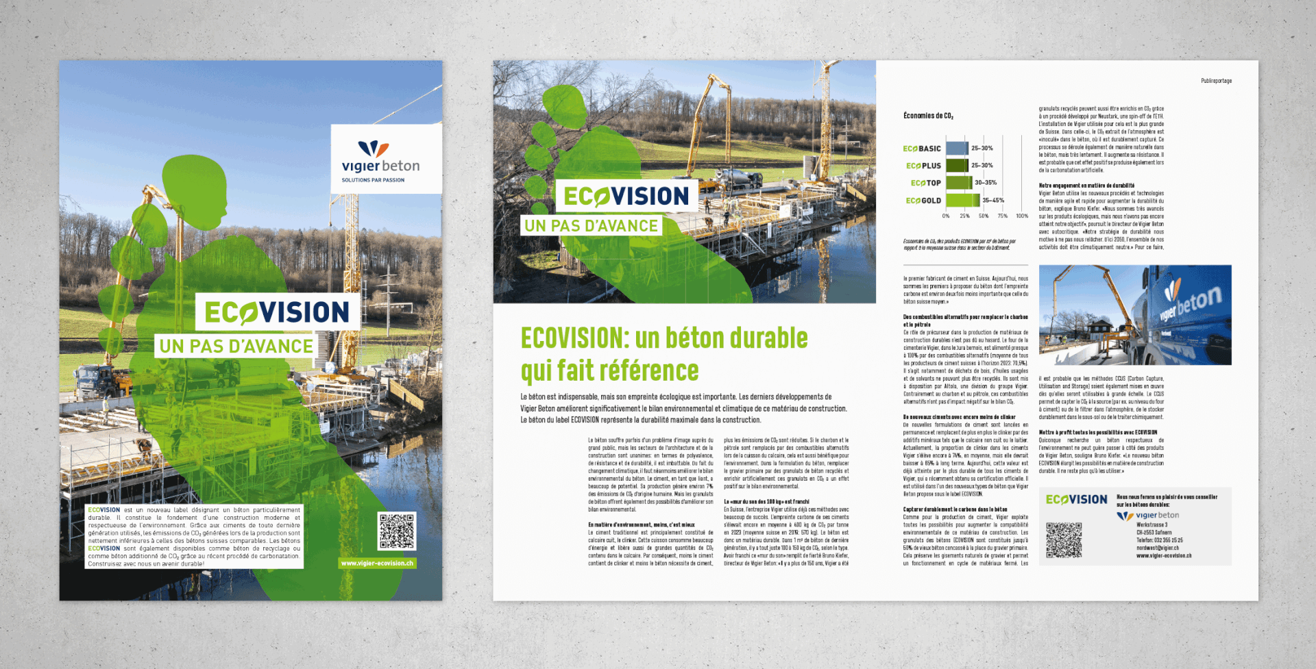 Notre proposition : le lancement d’un label global pour les bétons particulièrement durables. Sous la nouvelle marque « ECOVISION », seront désormais distingués les bétons à haute teneur en matériaux recyclés ainsi que ceux présentant des émissions de CO2 réduites, voire nulles. Les produits spécifiques recevront une désignation propre sous le préfixe « ECO ». Pour faire connaître ce nouveau label, une campagne intégrée a été mise en œuvre, comprenant des affiches, des annonces, des publireportages dans la presse spécialisée et quotidienne, une page d’atterrissage dédiée, de la publicité sur les bus, le marquage des camions ainsi qu’une présence lors de divers événements.