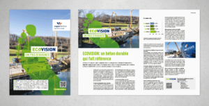 Notre proposition : le lancement d’un label global pour les bétons particulièrement durables. Sous la nouvelle marque « ECOVISION », seront désormais distingués les bétons à haute teneur en matériaux recyclés ainsi que ceux présentant des émissions de CO2 réduites, voire nulles. Les produits spécifiques recevront une désignation propre sous le préfixe « ECO ». Pour faire connaître ce nouveau label, une campagne intégrée a été mise en œuvre, comprenant des affiches, des annonces, des publireportages dans la presse spécialisée et quotidienne, une page d’atterrissage dédiée, de la publicité sur les bus, le marquage des camions ainsi qu’une présence lors de divers événements.